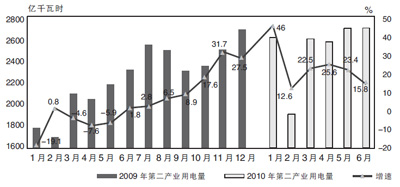 2009—2010年分月发电量及增速