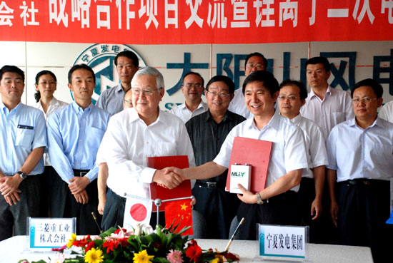 宁夏发电集团自2006年与日本三菱重工业株式会社签订第一份合作意向书,双方的合作从1MW风机技术供给合同到2.5MW级风力发电机组技术供给以及太阳能热发电、储能系统研发等技术合作,双方战略合作的范围不断得到拓展。