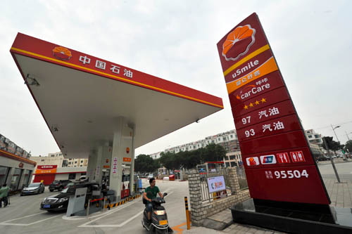 7月3日,一辆摩托车从中国石油宁夏销售公司一加油站内驶出。新华社记者 刘泉龙 摄