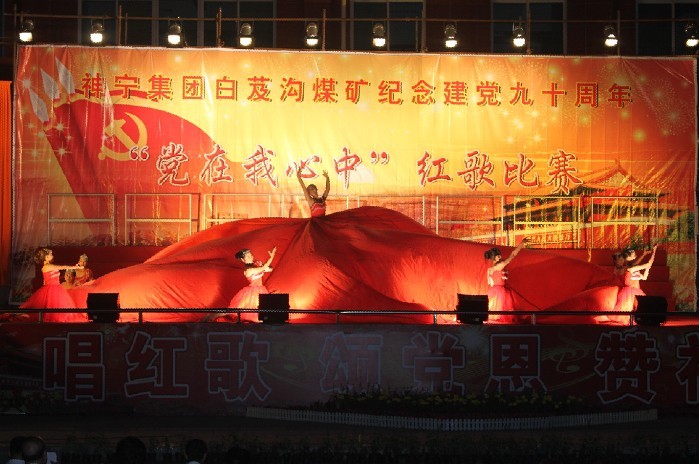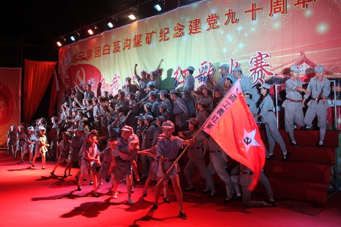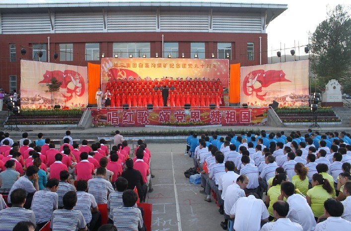 为隆重纪念中国共产党建党90周年,大力讴歌党的丰功伟绩,唱响共产党好、社会主义好、改革开放好、伟大祖国好、各族人民好的时代主旋律,6月22日晚,白芨沟煤矿举办了“党在我心中”红歌千人大合唱,来自该矿各基层单位的22只代表队的1000余名员工用激昂的歌声歌颂党、歌颂祖国、歌颂社会主义、歌颂改革开放。