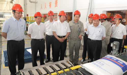 6月13日,神华集团董事长张喜武(左四),宁夏回族自治区党委常委、副主席齐同生(右三),副主席赵小平,神华集团副总经理郝贵(右一)在神宁集团董事长王俭(左一)、党委书记陆维平(左二)、总经理严永胜(左三)、副总经理姚敏等相关人员的陪同下,来到神宁集团烯烃聚丙烯包装车间进行调研。在详细了解了聚丙烯的生产工艺及流程后,张喜武充分肯定了神宁煤化工项目建设取得的成绩,并希望广大神宁员工发扬艰苦奋斗的精神再立新功。