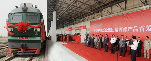 “呜呜……呜……”随着列车高昂的汽笛声,5月18日,备受关注的聚丙烯产品首趟外运列车缓缓地开出了宁东装车站,标志着神宁集团历时4年多开发建设的年产50万吨煤基烯烃项目产出合格产品。自治区经信委主任王永耀、神宁集团董事长王俭、自治区宁东管委会副主任杨宏岳、兰州铁路局银川车务段段长王春玖为聚丙烯产品铁路外运首发剪彩。