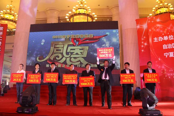 5月12日,在宁夏回族自治区民政厅、宁夏慈善总会举办的“感恩·2011宁夏慈善捐赠”活动中,神宁集团向宁夏慈善总会捐款500万元。