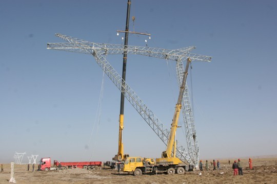 为圆满完成工程建设任务,提高施工效率,自今年2月份起,宁夏送变电工程公司认真组织科研力量,大胆开展技术创新,经过精心设计计算及方案对比,独创了以1台240吨吊车和一台70吨吊车首尾配合提拉的施工方案并成功试点,获得了工程总指挥部的高度评价。目前,该施工方案已在全标段进行全面推广。