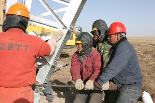 在工程施工中,宁夏送变电建设者攻坚克难,挑战“生命禁区”,克服了高寒缺氧、季节性沼泽、冻土施工、生命保障等难题,以一天一级到一级半的速度进行拉V型塔组塔施工,在雪域高原上谱写了电网建设史上的又一奇迹,更加彰显出宁夏送变电“宁电铁军”的品牌价值。