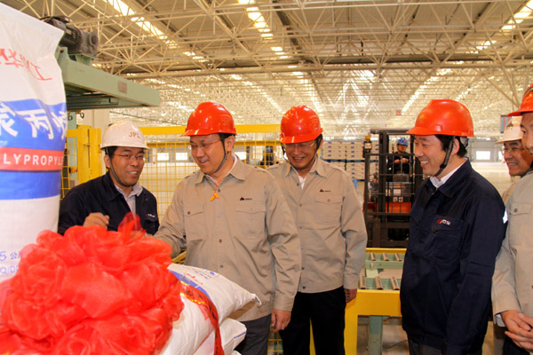 5月2日,神宁集团董事长王俭到煤化工分公司烯烃项目现场、聚甲醛项目现场实地查看,神宁集团副总经理、煤化工分公司总经理姚敏,副总经理杨吉平陪同调研。王俭一行先后来到烯烃公司中控室、产品库、聚合车间,详细了解了烯烃项目各流程试车运行情况和产品库存、销售情况。王俭充分肯定了烯烃公司技术人员攻克技术难关,由试车阶段顺利转入试生产阶段取得的成绩。在聚甲醛项目现场,王俭一行查看了项目建设情况,并鼓励技术人员要加强学习,争取早日成为项目技术专家 ,为神宁集团煤化工项目贡献力量。
