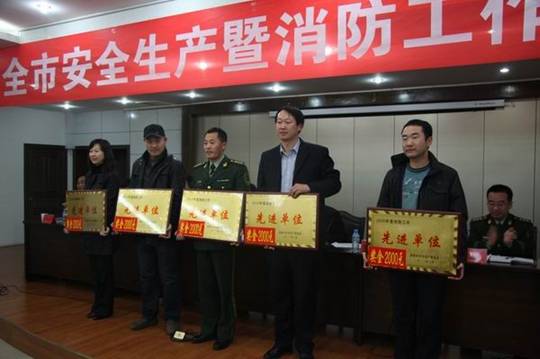 3月8日,灵武市政府召开消防安全工作总结表彰大会上,宝塔灵州公司被评为“灵武市消防工作先进单位”受到表彰奖励。灵武市副市长陈进贤,政法委副书记、公安局局长郑学文出席会议并为获奖单位颁发奖牌。此次会议主要对10年来在消防安全工作方面作出贡献的5个先进集体和15名先进个人进行了表彰。