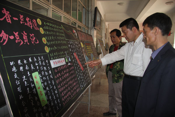本报讯(通讯员 田冬林)神宁集团白芨沟煤矿为增强全矿员工生态文明观念,动员全矿员工群众积极省一点能源 多一点资源参与资源节约型、环境友好型企业建设,举办节能宣传板报联展活动,以增强全员倡导节能的生产、生活方式和消费模式,达到节能减排的目的。图为员工正在观看节能宣传板报联展。