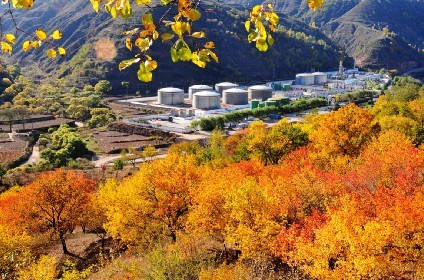金秋为鉴,当黄土高原上层林尽染,黄土地上一片金黄之中,石油人编织的绿色防护网成为最美的秋色风景画。