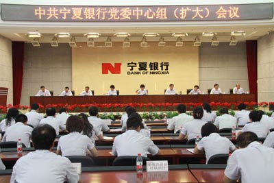6月18日,宁夏银行召开党委中心组理论学习(扩大)会议,学习贯彻自治区第十一次党代会会议精神。会议由党委副书记、行长李建华主持,党委书记路芳传达会议精神并作了重要讲话。