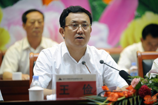 图为神华宁夏煤业集团公司董事长王俭在班组建设总结表彰大会上发言。