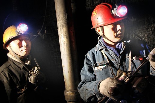 图为该矿领导干部与瓦检员在工作现场落实责任提标准。 田冬林 摄
