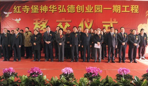 移交仪式上,神华宁夏煤业集团公司党委书记陆维平介绍了红寺堡神华弘德创业园的建设情况。他说,红寺堡神华弘德创业园是神华集团感恩祖国、回报社会所作出的一项善举,项目自去年9月22日开工建设以来,神华宁夏煤业集团公司秉承将红寺堡神华弘德创业园建成样板工程、示范工程的指示精神,高度重视项目建设,第一时间成立了项目建设指挥部,严格监理、科学组织,高起点、高质量、高水平地推进项目建设。经过上千名建设者68天的昼夜奋战,如期完成了项目一期建设任务。下一步,神华宁夏煤业集团公司将坚持高标准、现代化、配套设施齐全、功能完善的目标,加快推进后续工程建设,争取早日让当地群众感受到神华集团的善举。