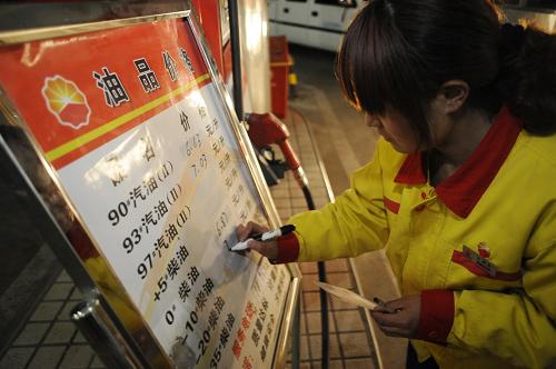 2月20日,宁夏吴忠市一家加油站的工作人员在更改油价标牌。国家发展和改革委员会19日宣布,自20日零时起将汽油、柴油价格每吨均提高350元,相当于90号汽油全国平均零售价每升上调0.26元,0号柴油全国平均每升上调0.3元,涨幅为4.5%。