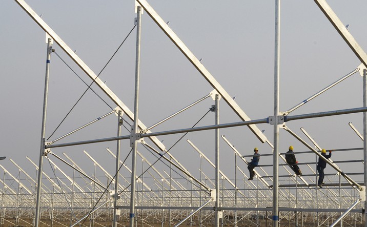 宁夏石嘴山市惠农区一处正在建设的光伏电厂(11月20日摄)。